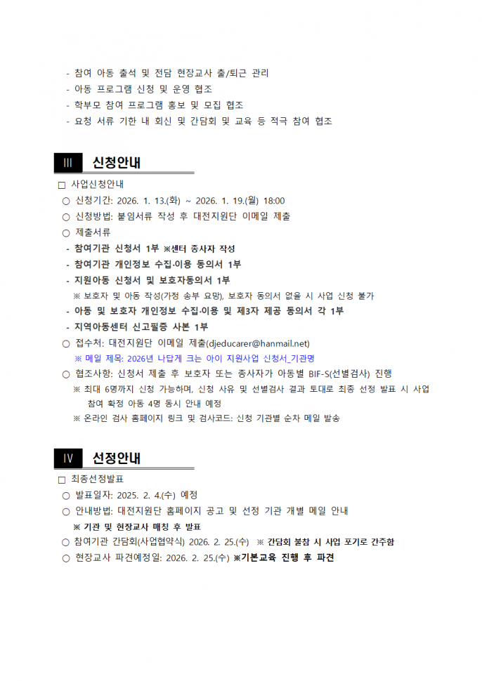 2026년도 나답게 크는 아이 지원사업 현장교사…